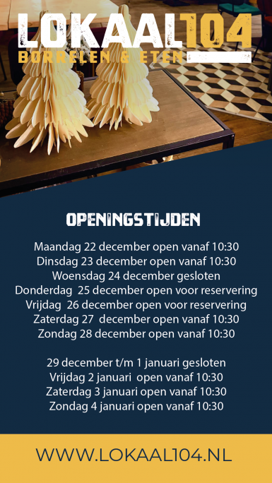 3e Kerstdag zijn we regulier geopend voor a la carte